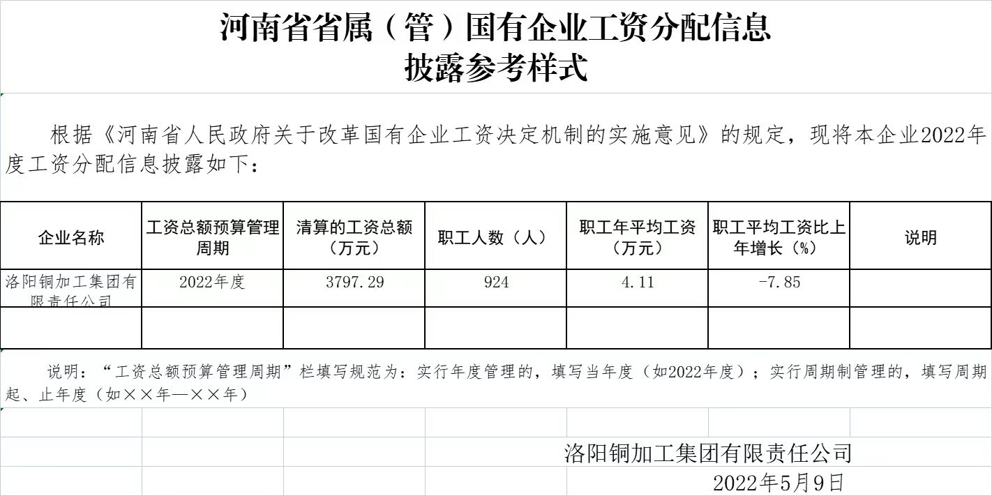 河南省省屬(管)國有企業工資分配信息披露參考樣式